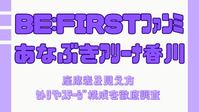ライブ・コンサート BE:FIRSTファンミーティングあなぶきアリーナ香川の座席表&見え方|セトリやステージ構成を徹底調査 2026年1月16日 こふじまる KoFu Times 「香川公演、当たった…!でも座席どんな感じ?」「ファンミってライブと何が違うの?ちゃんと見える?」 そんなBESTYさんのために、B …
