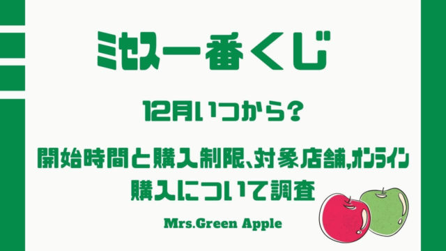 グッズ ミセス一番くじ12月何時から?開始時間と購入制限、対象店舗,オンライン購入について調査 2025年11月12日 こふじまる KoFu Times 今回は、Mrs. GREEN APPLE(ミセス)の最新一番くじ(2025年12月)についてまとめていきます。 2025年の冬に開催 …