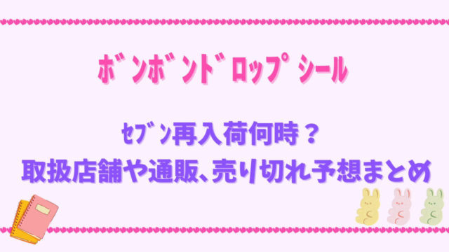 グッズ ボンボンドロップシール、セブン再入荷何時?取扱店舗や通販、売り切れ予想まとめ 2025年11月11日 こふじまる KoFu Times 「セブンにボンボンドロップシールが再入荷してるって聞いたけど、いつから?」「どこの店舗で買えるの?」「通販はある?」──そんな疑問にお答え …