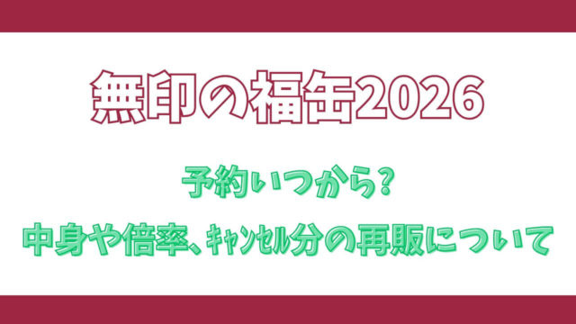 グッズ 無印の福缶2026いつから?中身や倍率、キャンセル分の再販について 2025年11月11日 こふじまる KoFu Times 毎年お正月の恒例となっている「無印良品の福缶」。2026年版の発売情報がついに発表されました! この記事では、無印の福缶2026の抽 …