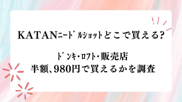 グルメ KATANニードルショットどこで買える?ドンキ・ロフト・販売店や半額、980円で買えるかを調査 2025年12月2日 こふじまる KoFu Times 「KATAN(カタン)ニードルショットって結局どこで売ってるの?」SNSで話題に上がるたびに、私の周りでも同じ質問が飛び交います。 …