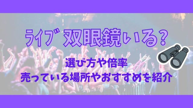 ライブ準備 ライブ双眼鏡いる?選び方や倍率、売っている場所やおすすめを紹介 2025年12月3日 こふじまる KoFu Times ライブに行くときって、ふと「双眼鏡って持っていったほうがいいのかな…?」って迷いますよね。 正直、ステージが遠くてアーティストの顔が …