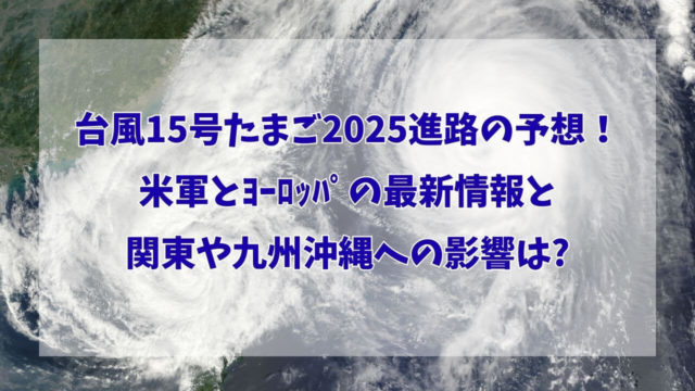 台風 台風15号たまご2025進路の予想!米軍とヨーロッパの最新情報と関東や九州沖縄への影響は? 2025年9月3日 こふじまる KoFu Times 今年も「台風のたまご」が、日本列島に大きな影響を与える可能性があります。特に、今注目されているのが「台風15号のたまご」です。 この …