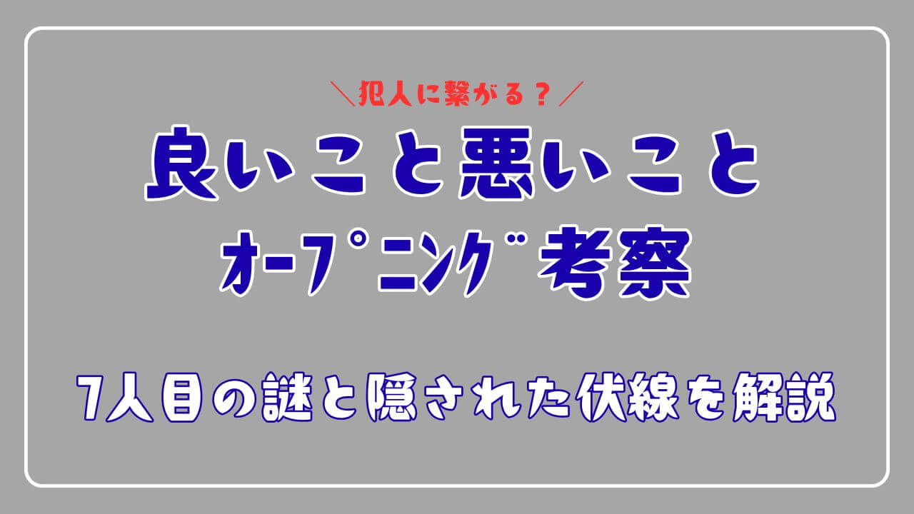 『良いこと悪いこと』のオープニングは、ただの映像美ではなく 物語の伏線を凝縮した“考察用の地図” と言えます。