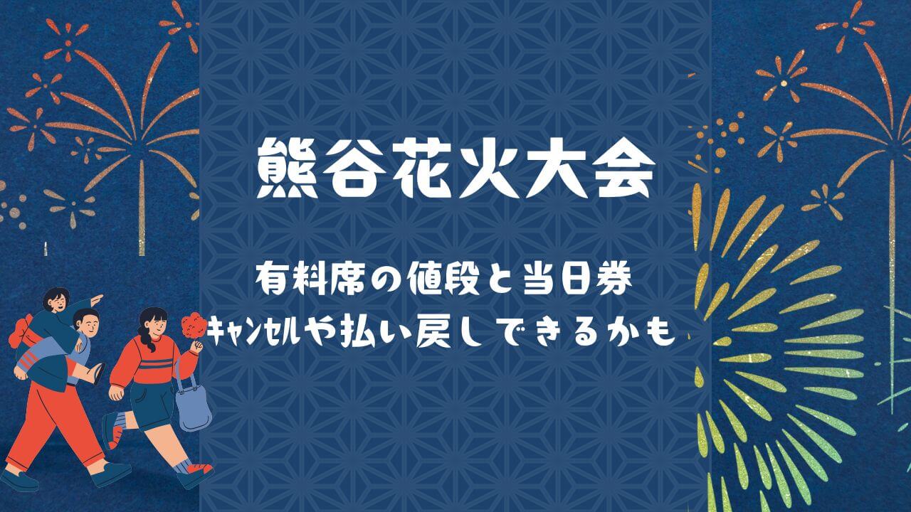 熊谷花火大会の有料席チケットは、。ただし、荒天などによる大会の中止や延期の場合、払い戻しの対応がされることがあります。詳細はチケット購入時の注意事項や公式サイトで確認してください。