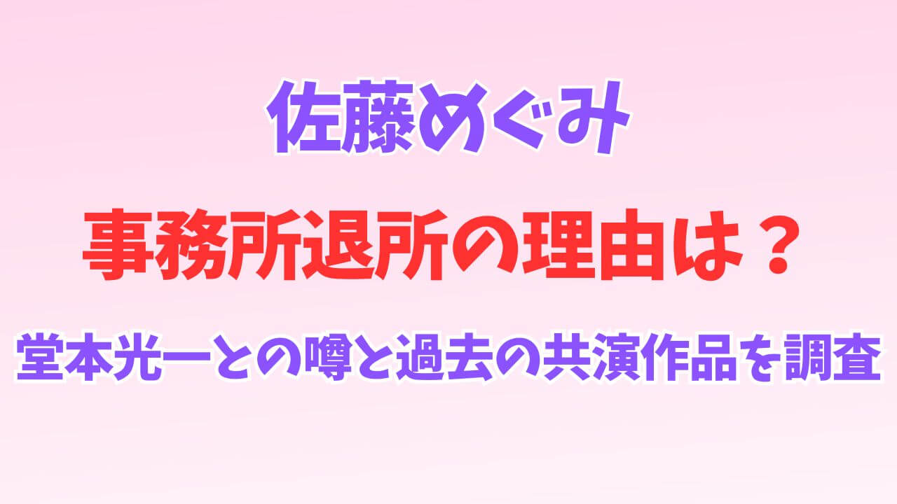 今日は、突然の発表で話題になった佐藤めぐみさんの事務所退所について、そして世間をざわつかせている堂本光一さんとの噂、さらには過去の貴重な共演作品まで一気に深掘りしていきます。
