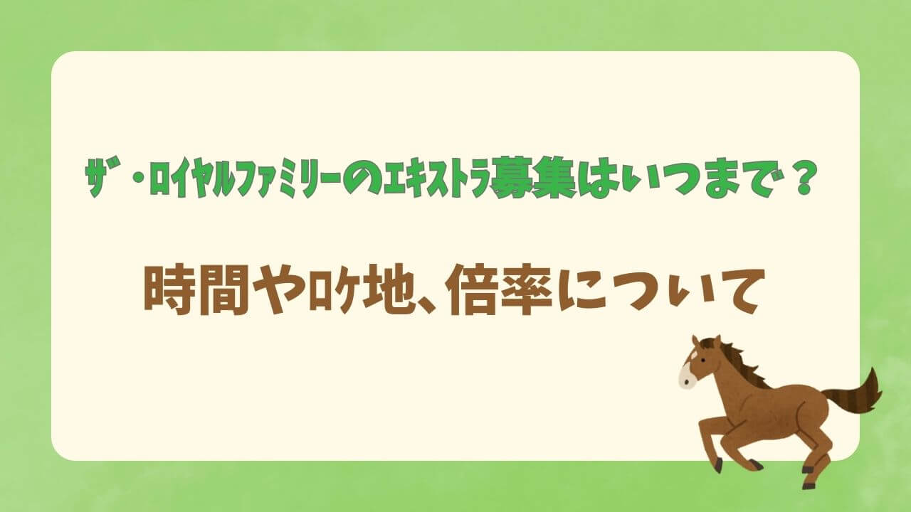 「ザ・ロイヤルファミリー」のエキストラ募集は2025年9月中旬までがメインですが、人気のため募集締切は早めに終了することもあります。