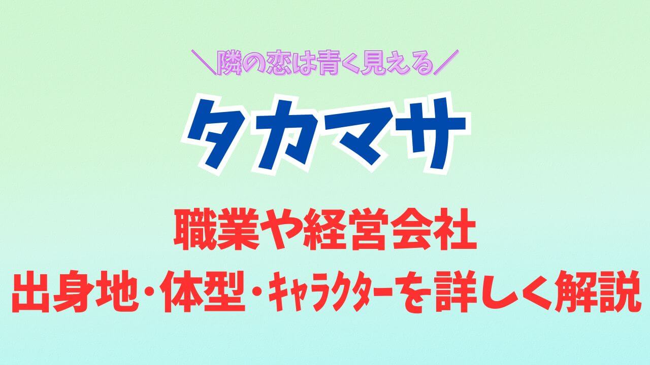 今回は、人気恋愛リアリティ番組『隣の恋は青く見える5 – Chapter TOKYO -』(通称「隣恋5」)に出演中の注目男子、タカマサさんについて、プロフィールから仕事、体型、性格まで、まるっと詳しくご紹介します。