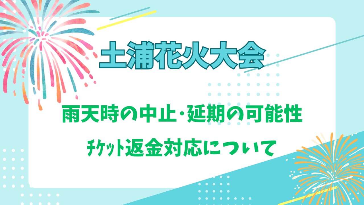 そんな疑問を持つ人のために、この記事では2025年の土浦花火大会の雨天時対応・中止や延期の判断基準・チケット返金対応まで、公式情報や過去の実例をもとに詳しくまとめました!