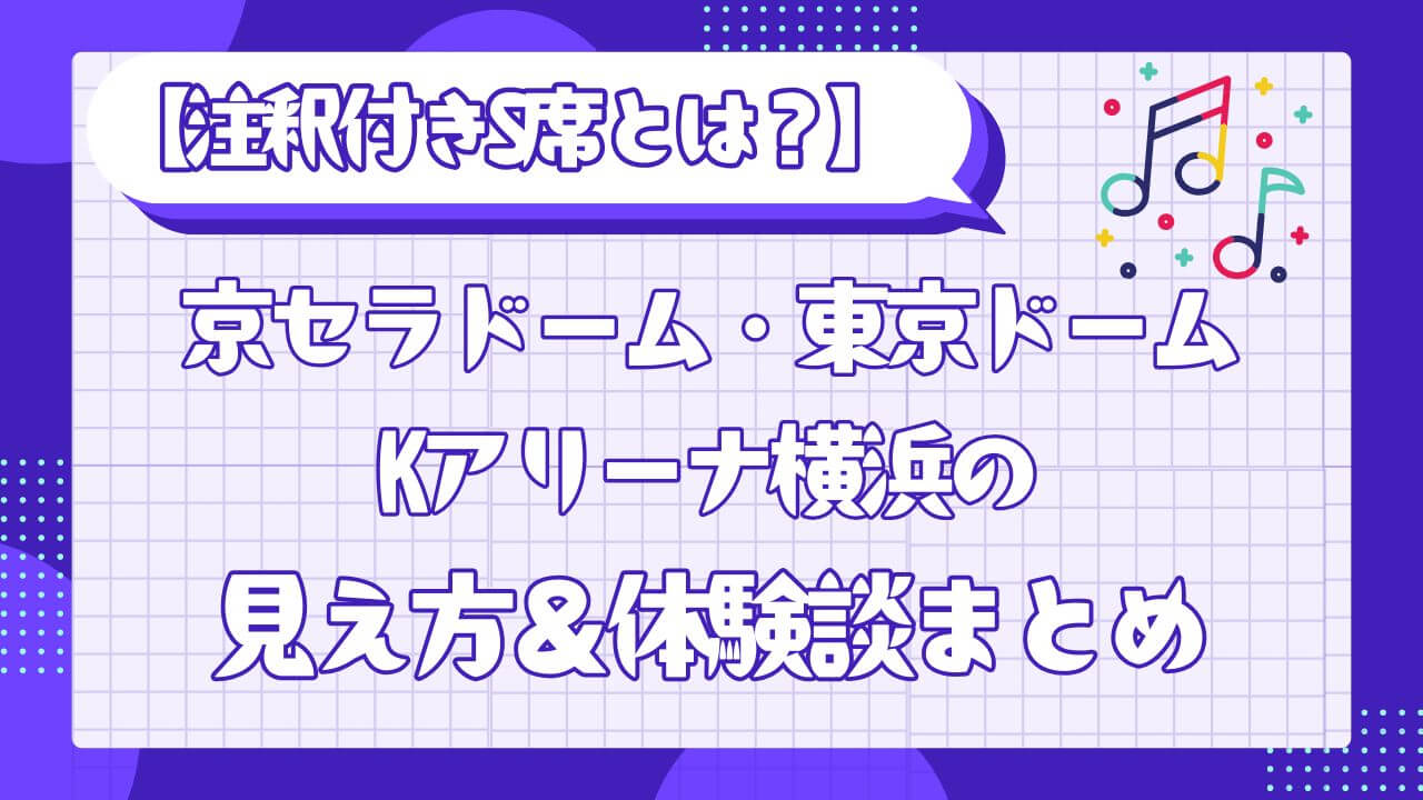 本記事では、京セラドーム・東京ドーム・Kアリーナ横浜それぞれの「注釈付きS席」からの見え方や、実際に座った人の体験談をまとめました。