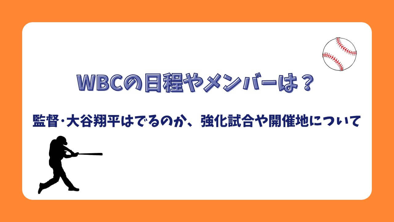 今回は、WBCの日程や注目のメンバー、監督、大谷翔平選手の出場状況、さらには強化試合の情報や開催地について最新情報をまとめてみました。